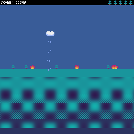 Nah, I’d rain is a simple game made for Mini Jam 191: Sky with the limitation of constant descent. You play as a rain cloud fighting to keep a forest alive by putting out fires and healing trees. Now the question is Would you lose?